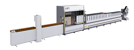 Automatic assembly line for door frames (front and rear punching)